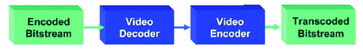 视频转码是一个高运算负荷的过程,需要对输入的视频流进行全解码、视频过滤/图像处理、并且对输出格式进行全编码。最简单的转码过程(图3)仅仅涉及到解码一个比特流和用不同的编解码器重新编码两个步骤。这种硬转码看似很简单,只需要一个解码器和一个编码器,但是最终显示结果并不理想,因为视频数据解码后重新编码会降低画质。